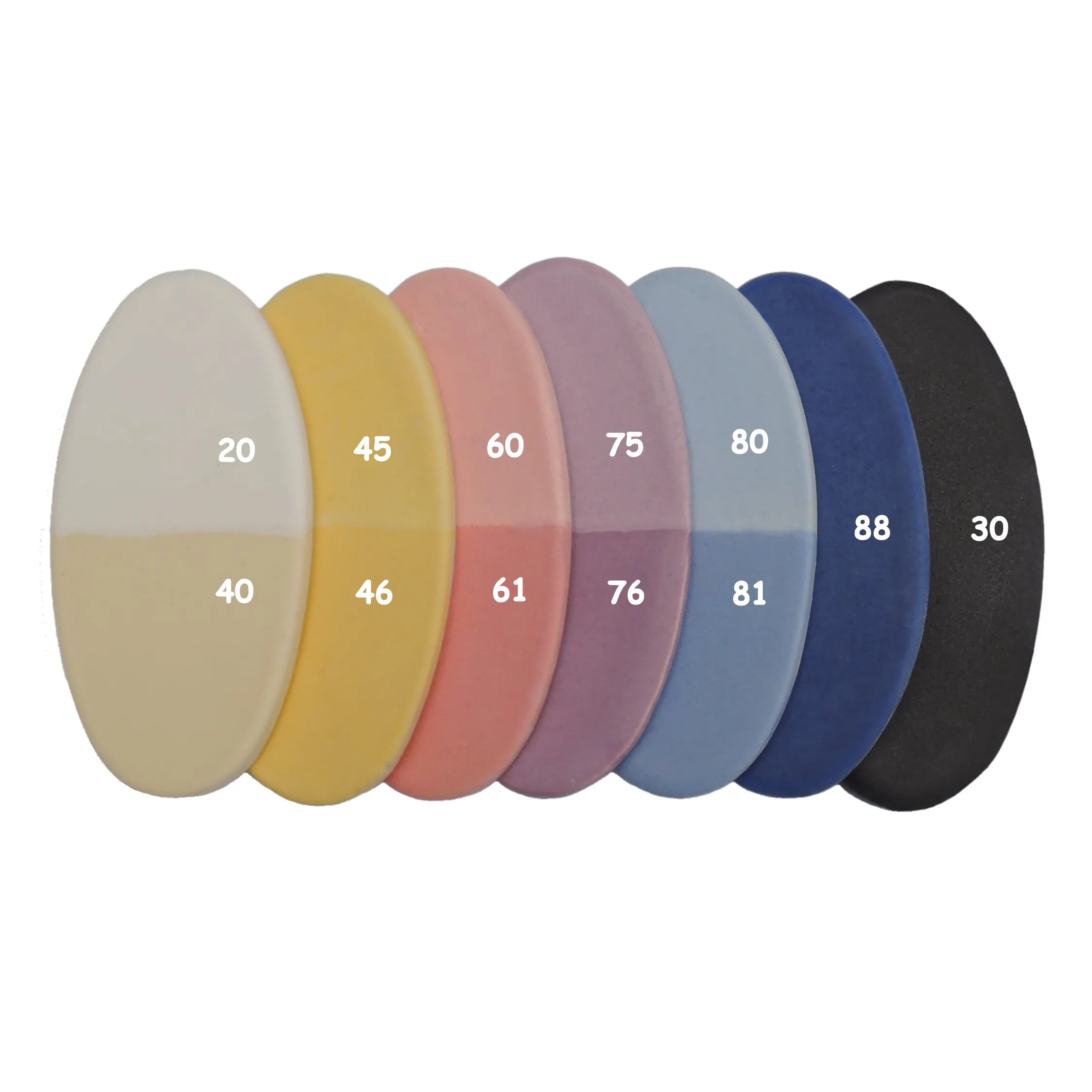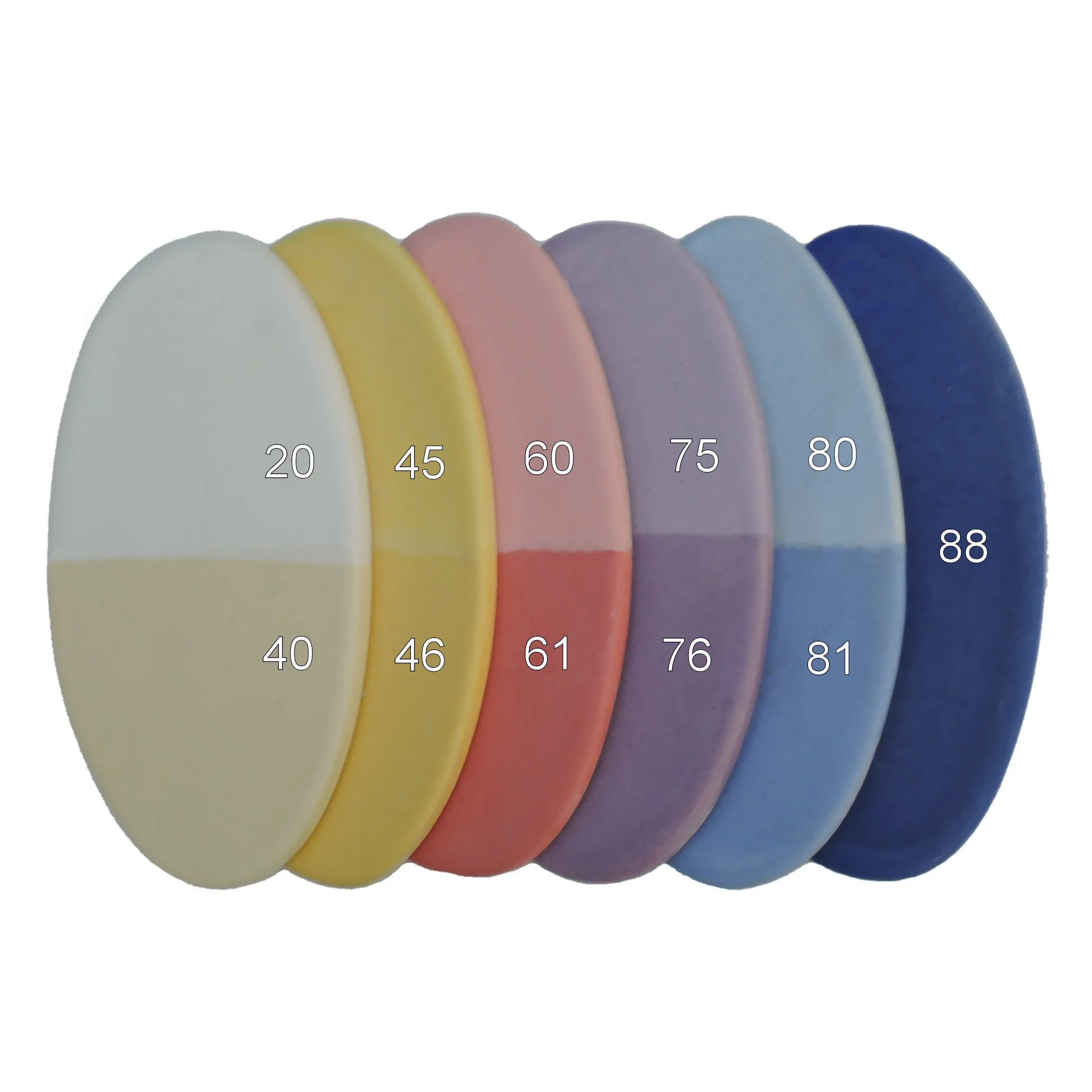 KleurenDe foto's tonen enkele kleurvoorbeelden. De laatste foto toont alle beschikbare standaard kleuren van het keitje, waar een huisje in bijpassende kleur op wordt geplaatst (ton-sur-ton), tenzij gekozen wordt voor het optionele gouden huisje.