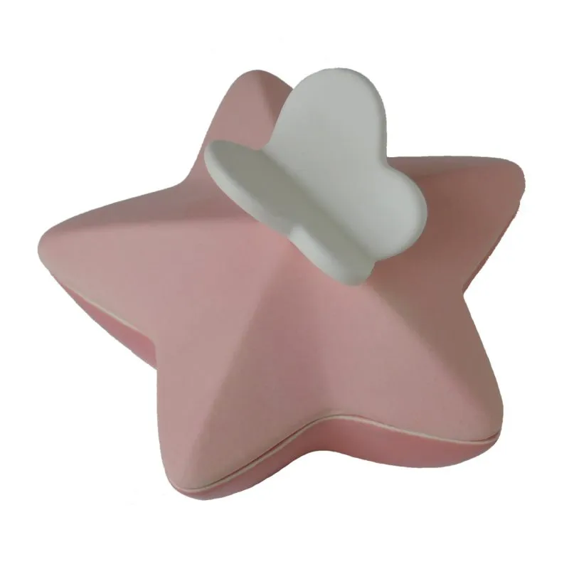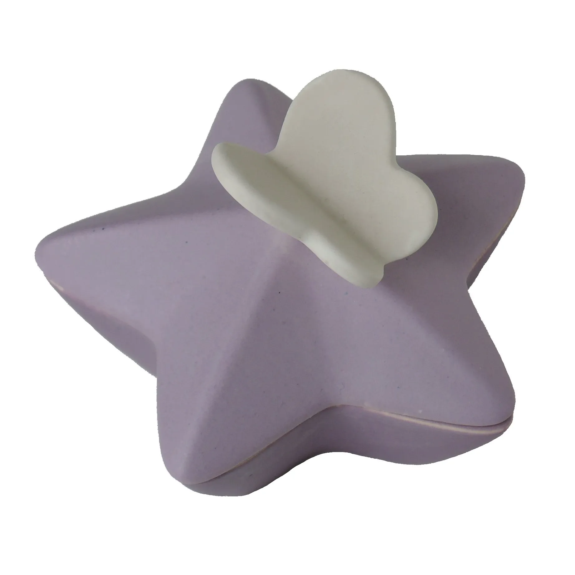 Een klein sterretje om een gedeelte van de as in te bewaren. Voorzien van een wit vlindertje op de deksel. De vorm is zó gekozen dat die prettig in de hand ligt; het glazuur voelt aan als satijn.Dit ‘aaibare’ urntje wordt geleverd in vijf standaard kleuren.Er kan (optioneel) een naam op worden aangebracht in glazuur van het sterretje. Zo wordt het een persoonlijk gedenksteentje dat gekoesterd kan worden.