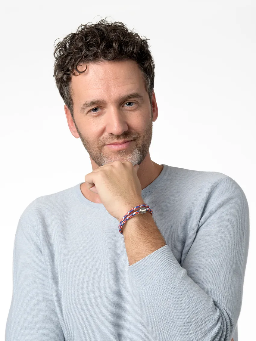 Heren as armband/assieraad koord tommy rood-blauw & RVS ashouder