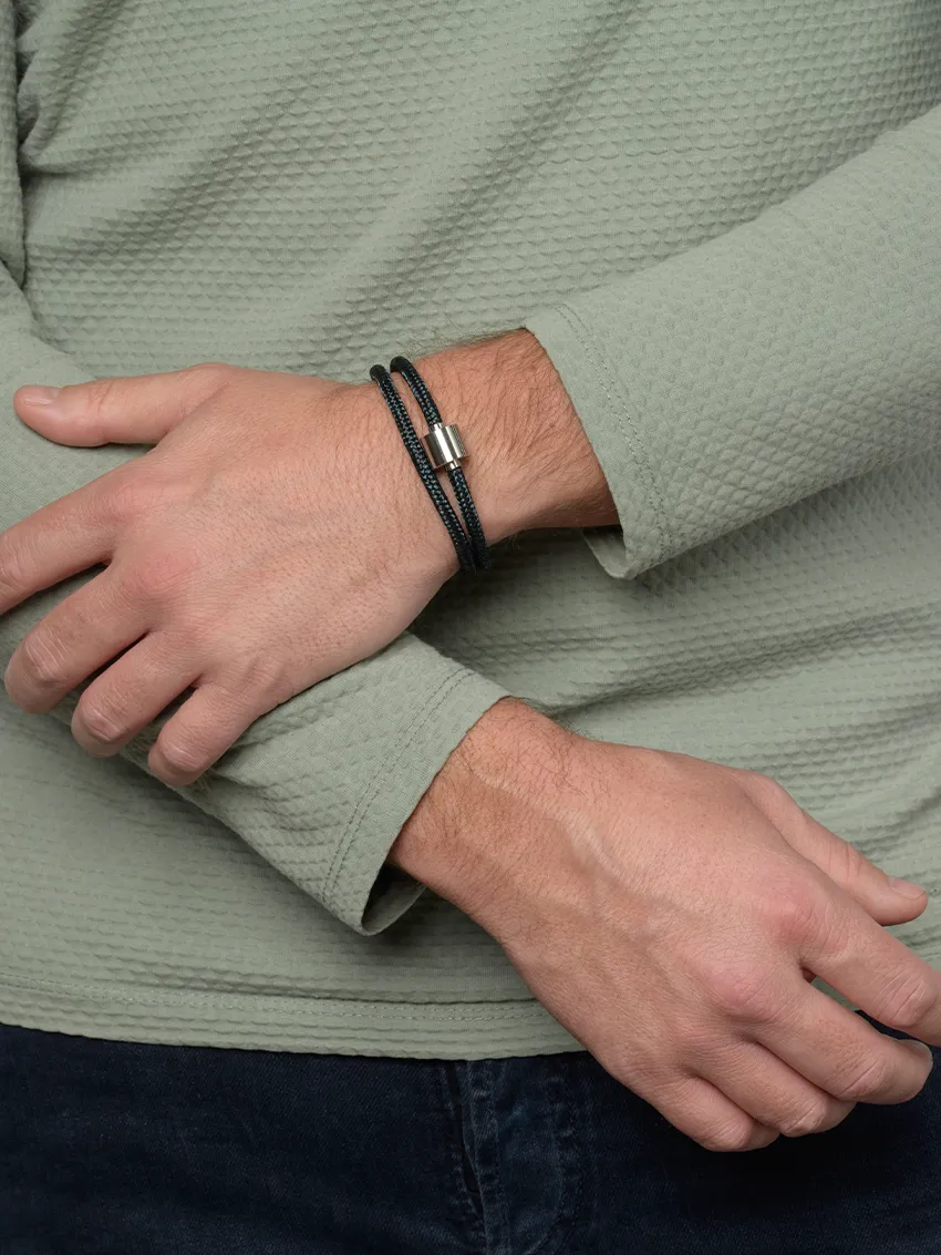 Heren as armband/assieraad koord zwart-petrol & RVS ashouder