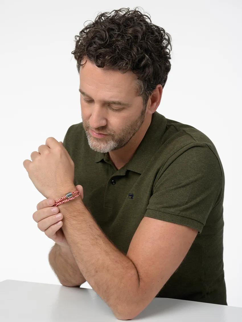 Heren as armband/assieraad koord rood-zwart & RVS ashouder