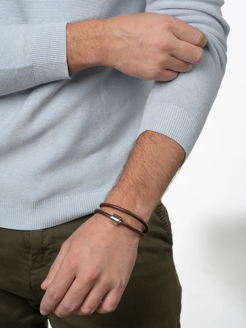 Heren as armband/assieraad leer bruin & RVS ashouder