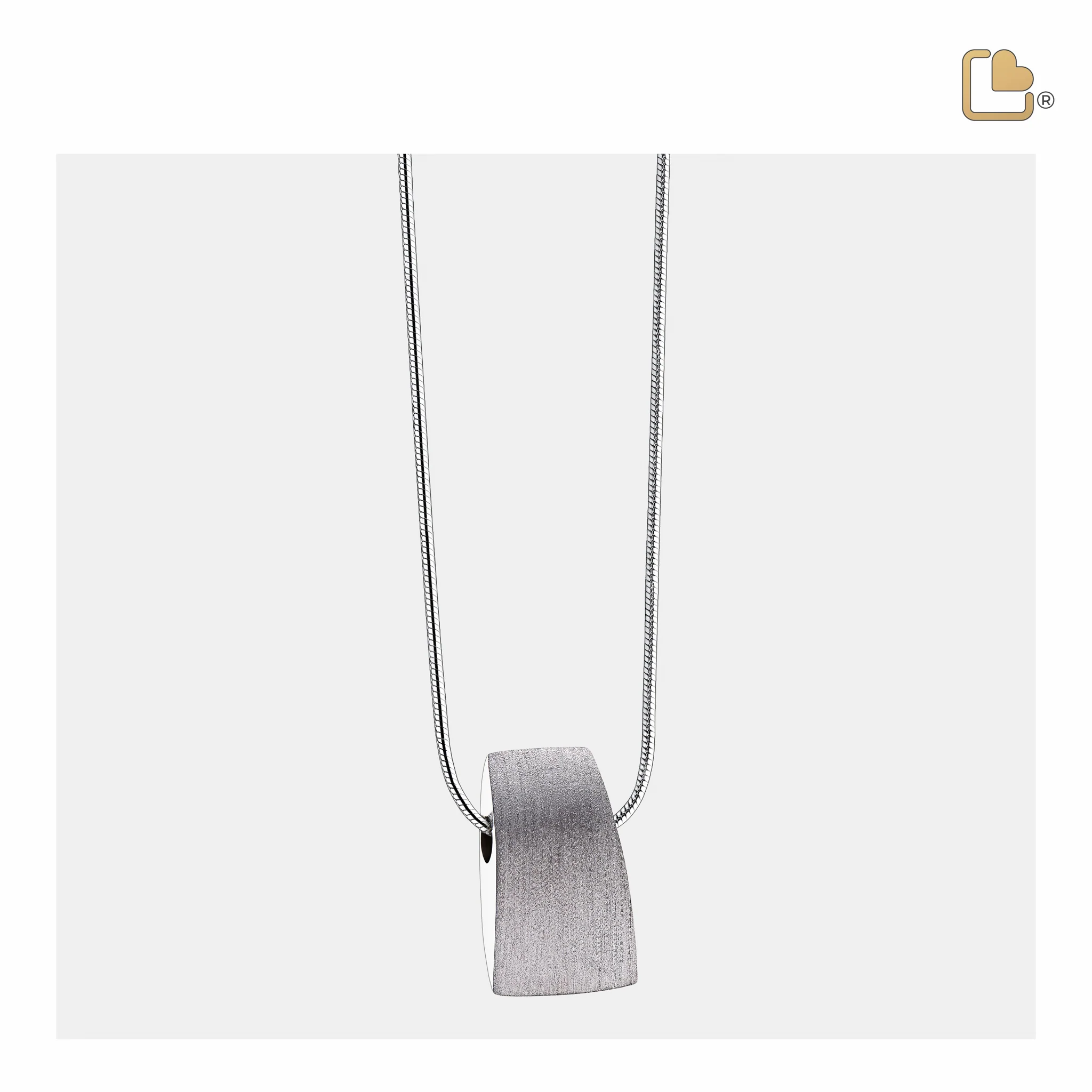 Handgemaakte ashanger vervaardigd uit Ruthenium en 925 Sterling zilver uit de exclusieve LoveUrns Treasure collectie. Met fraaie glimmend en gematteerd zilveren afwerking. Slijtvast gerhodineerd zilver. Hierdoor is dit assieraad sterker, oxideert het niet, is het niet gevoelig voor atmosferische invloeden en behoudt het langer zijn glans en elegantie. Met holle ruimte voor een symbolische hoeveelheid as of haar. Vulbaar en eenvoudig afsluitbaar met een inbusschroefje aan de achterzijde.Deze ashanger wordt geleverd met het bijpassende, originele zilveren LoveUrns Treasure collier van 50 centimeter (voorzien van een extra stevig karabijnslot).Inclusief echtheidscertificaat, vulsetje en elegante LoveUrns Treasure Box™.