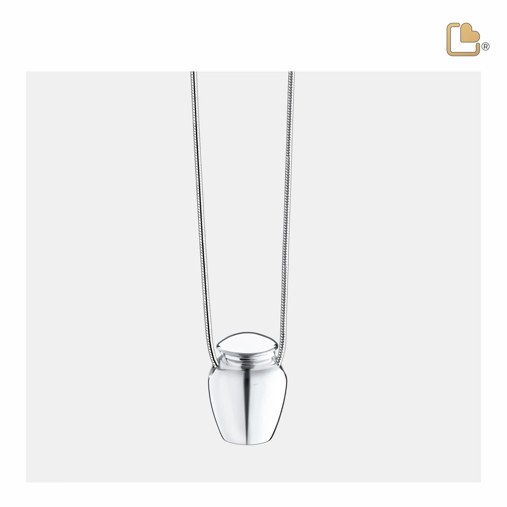 Handgemaakte ashanger vervaardigd uit 925 Sterling zilver uit de exclusieve LoveUrns Treasure collectie. Met fraaie glimmend zilveren afwerking. Slijtvast gerhodineerd zilver. Hierdoor is dit assieraad sterker, oxideert het niet, is het niet gevoelig voor atmosferische invloeden en behoudt het langer zijn glans en elegantie. Met holle ruimte voor een symbolische hoeveelheid as of haar. Vulbaar en eenvoudig afsluitbaar met een inbusschroefje aan de achterzijde.Deze ashanger wordt geleverd met het bijpassende, originele zilveren LoveUrns Treasure collier van 50 centimeter (voorzien van een extra stevig karabijnslot).Inclusief echtheidscertificaat, vulsetje en elegante LoveUrns Treasure Box™.