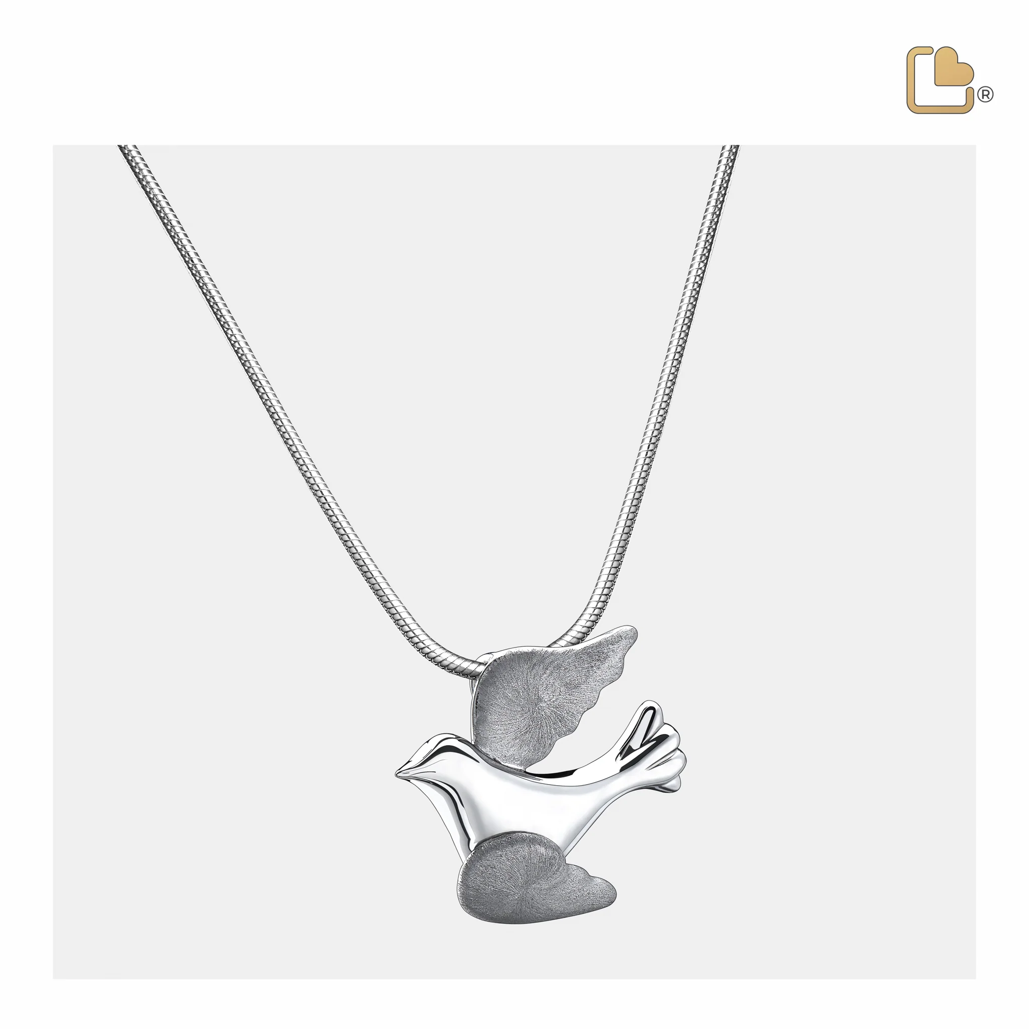 FlyingDove™ duif ashanger/assieraad zilver incl. collier