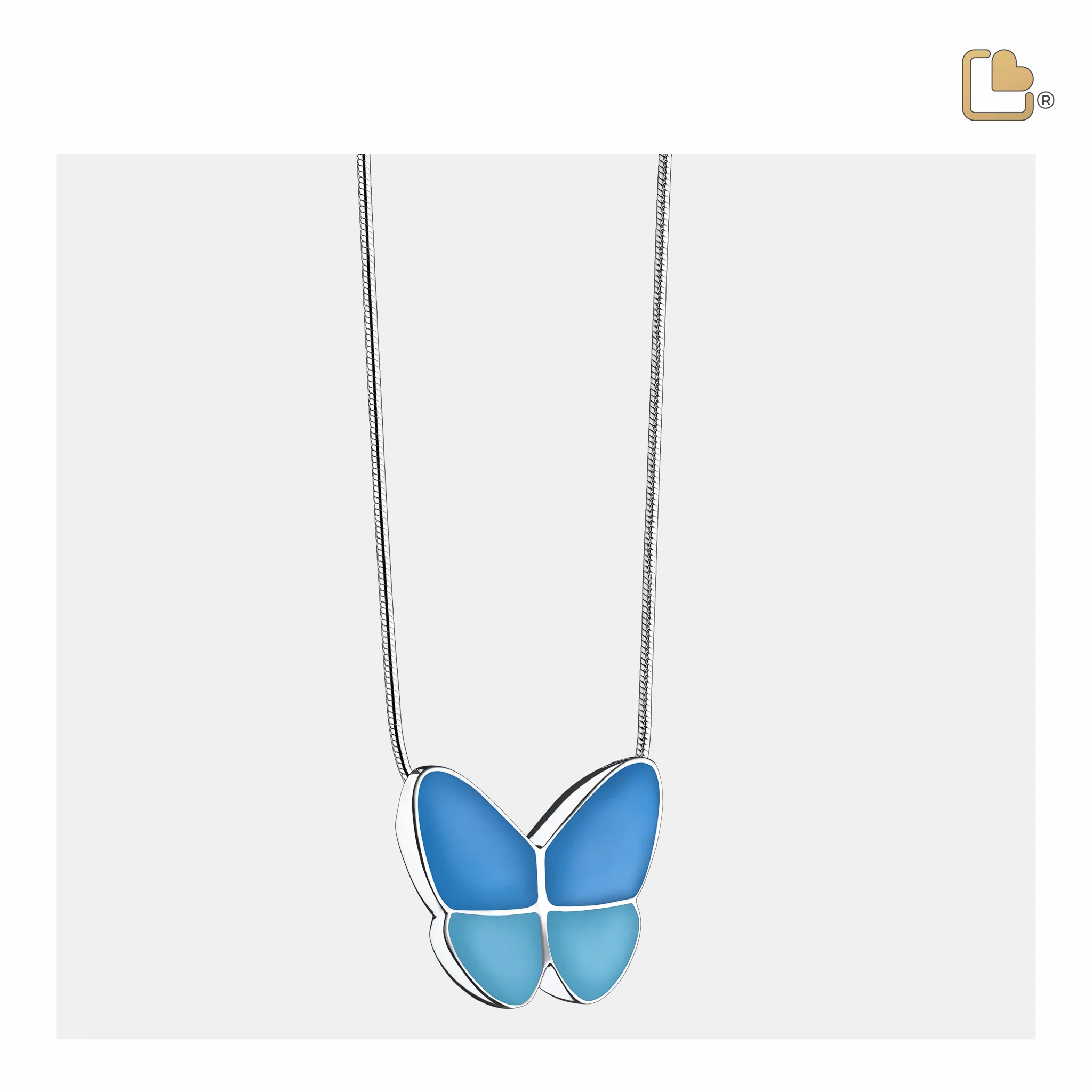Wings of Hope™ vlinder ashanger/assieraad zilver-blauw & collier