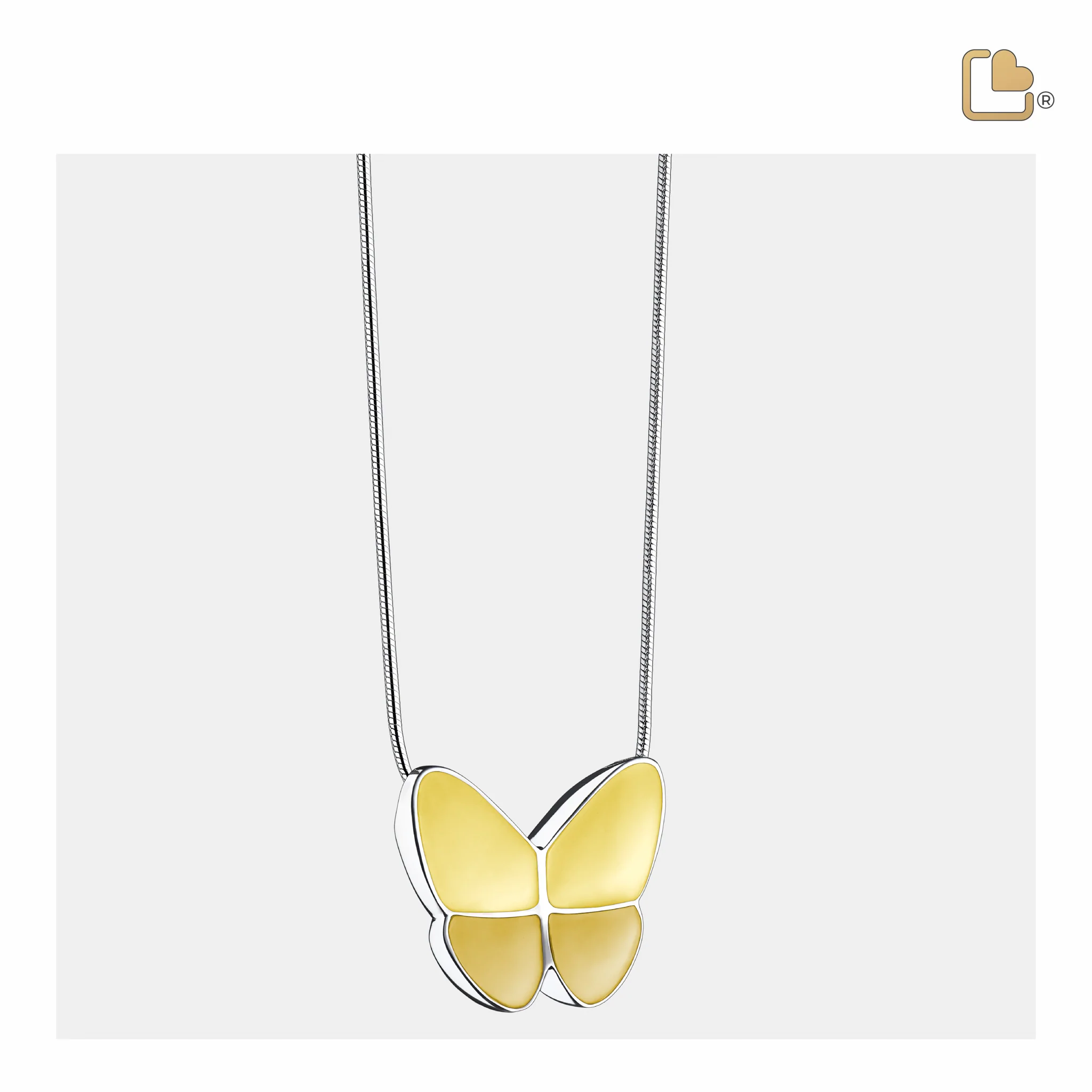 Wings of Hope™ vlinder ashanger/assieraad zilver-geel incl. collier