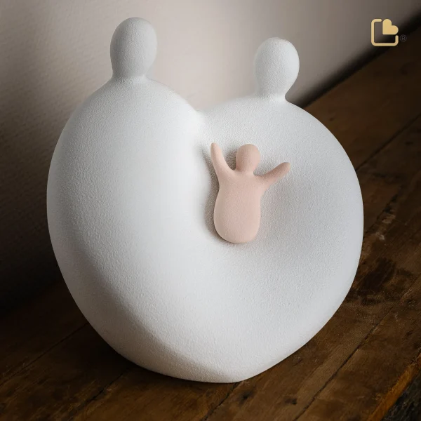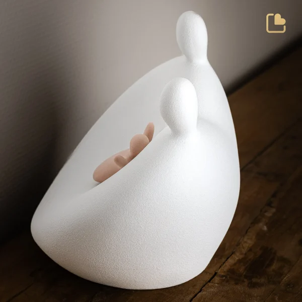 – Is een volwaardige urn met liefdevolle verzorgers die een kind omhelzen, van wie ze voor altijd zullen houden.