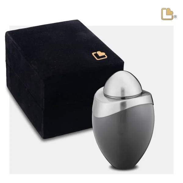 De Amore™ mini-urn straalt elegantie en sereniteit uit. De zachtgrijze kleur straalt een gevoel van vrede en harmonie uit, terwijl de geborstelde tinkleur een vleugje weelde en verfijning toevoegt. Het ontwerp van deze urn weerspiegelt de essentie van liefde en toewijding, en viert de blijvende band tussen jou en je dierbare.