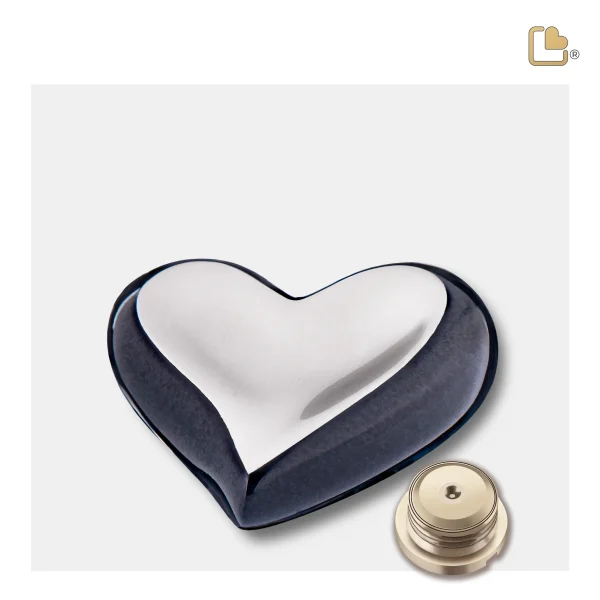 Hart mini-urn midnight & geborsteld zilver