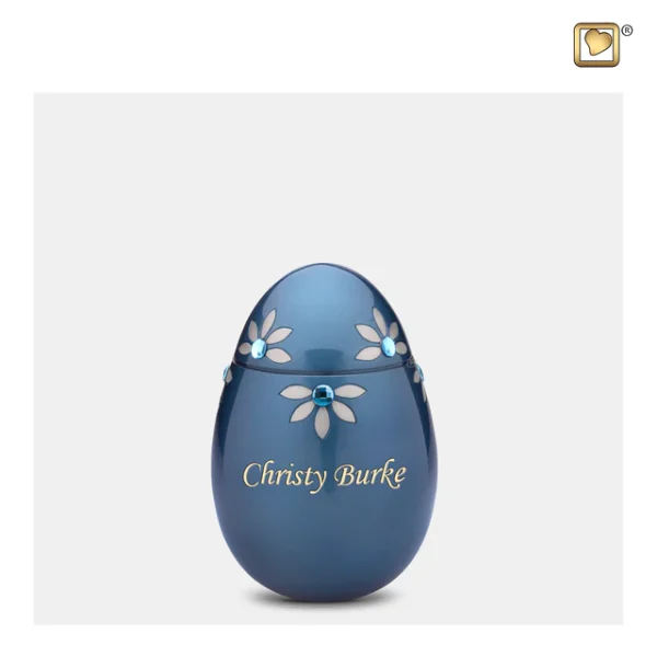 De Nirvana Azure™ mini-urn heeft een uniek eivormig ontwerp met prachtige details.