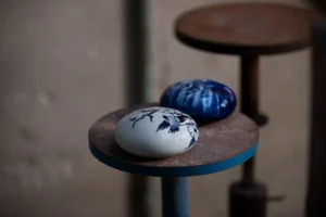 De plateelschilders schilderen met de hand de traditionele Royal Delft decoraties op de Pebble. Zij doen dit met speciale penselen van marter- en eekhoornhaar en een op kobaltoxide gebaseerde zwarte verf. De kobalt in de verf ondergaat in de oven een chemische reactie waardoor de kleur verandert van zwart naar blauw. Vervolgens gaat de Pebble nog een keer de oven in.