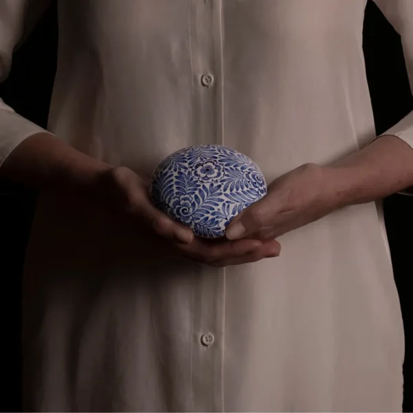 Uitnodigend om vast te houden en te koesteren. Een kunstobject voor in je interieur met een speciale inhoud. Royal Delft geeft met deze mini-urn een kleine, symbolische hoeveelheid as van een dierbare een veilig en stijlvol omhulsel.