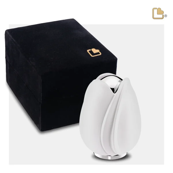 Met zijn tijdloze ontwerp en symbolische betekenis, is de LoveUrns Tulip™ softcoat mini-urn witte tulp een prachtige keuze voor het bewaren van de herinnering aan een geliefde, en een blijvend symbool van liefde en verbondenheid.