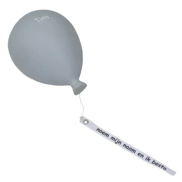 Een ballonnetje hangt aan de muur en lijkt te zweven; het suggereert op te stijgen naar de hemel. Het kan ook worden neergelegd.