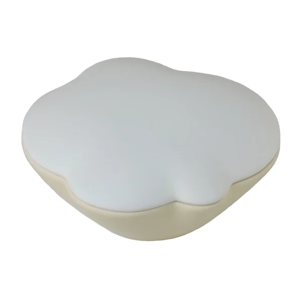 Het wolkje kan een plaats krijgen in huis, zonder dat het direct zichtbaar is dat het een urn is. De vorm is zó gekozen dat die prettig in de hand ligt; het glazuur voelt aan als satijn.